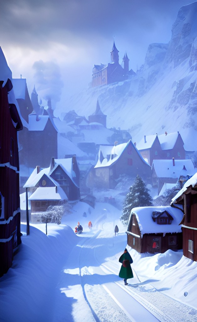 Village in winter. Auril dominates the winter season with ice, snow, and freezing temperatures.